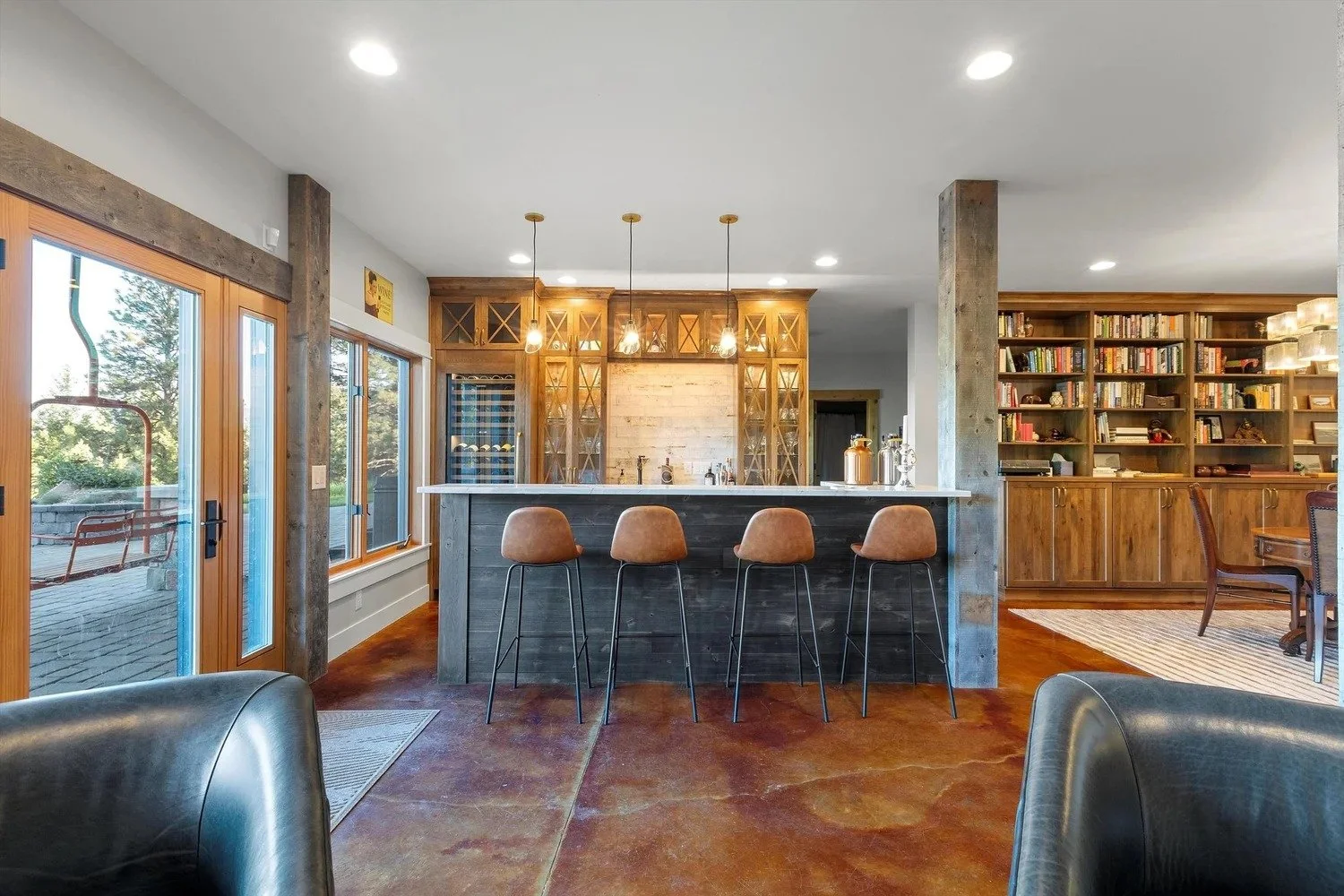 This one-of-a-kind home showcases a gourmet chef’s kitchen, custom fireplace, spa-like primary suite, and a daylight basement with a full bar and spacious library.